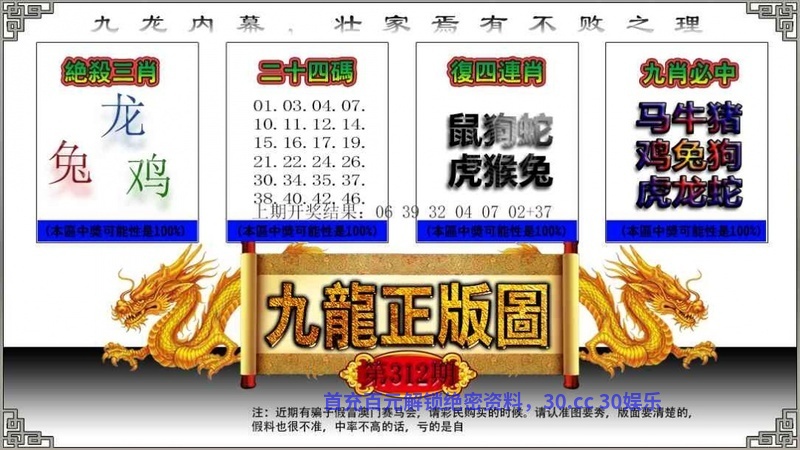 | 312期:家野中特【野兽野兽】开:龙14中 |